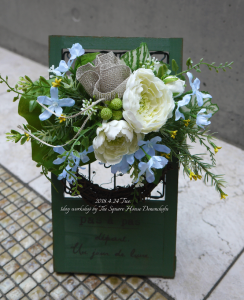 爽やかに初夏を迎える小さなドア飾り。お手入れいらずのアーティフィシャルフラワーで、センスが光るおしゃれなアレンジをつくってみませんか。母の日のギフトとしても喜ばれるデザインです。2個以上制作される場合はラッピングサービスいたします。