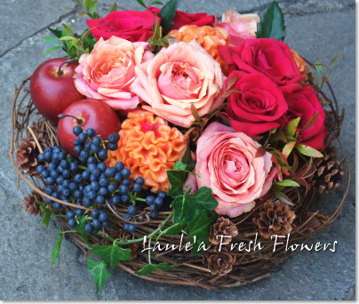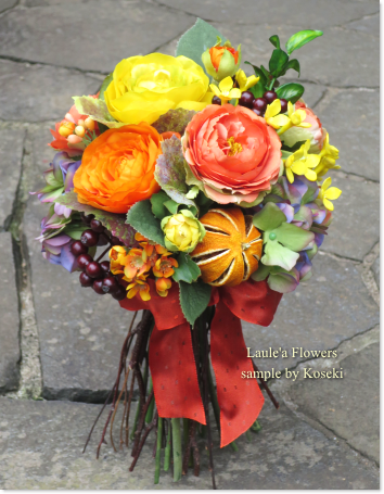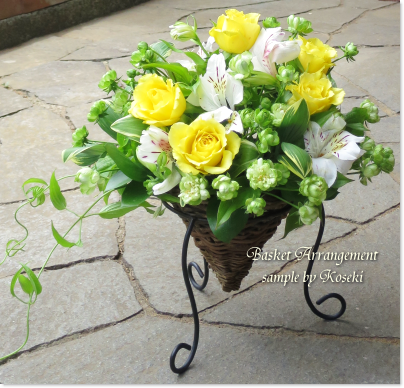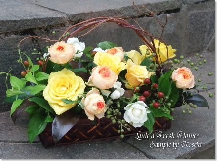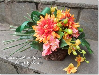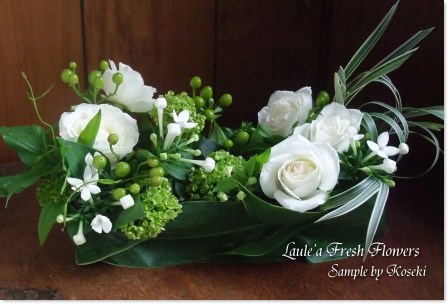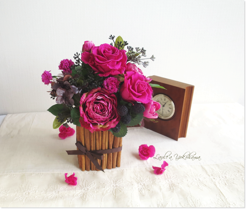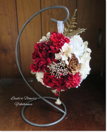 ラウレア横浜香り花教室のレッスン作品のご紹介です。レッスン終了後は英国総領事公邸の由緒ある洋館の一角に作品を飾り写真撮影をしております。これまで開催いたしましたレッスンの詳細やレポートは、講師ブログ Hi! HanaHana にてご覧いただけます。